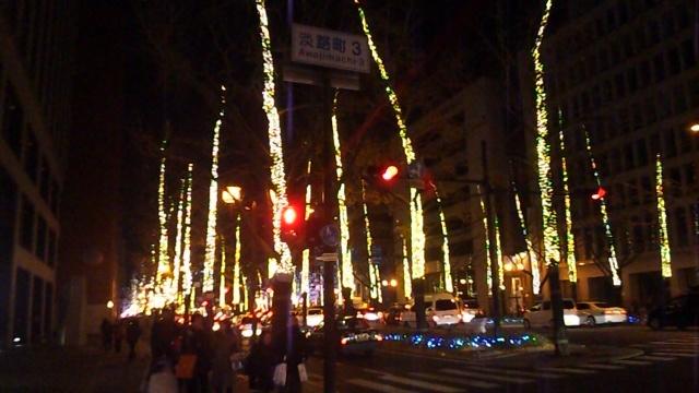 私の中で、冬の風物詩といえば学生時代に過ごした仙台の「光のページェント」でした。杜の都仙台のシンボルでもある、けやき並木は非常に大きくて密度が高いので、そこにぎっしりと小さな電球がちりばめられて輝くページェントを初めて見たときには、大変感動したのを覚えています。しかし、今回の御堂筋イルミネーションもとても美しく、また違った感動がありました。最近の光のページェントがどのようにバージョンアップされているのかは分からないのですが、当時見た光のページェントとの一番の違いは、御堂筋イルミネーションの方がかなりカラフルなことでした。私としては、単色とはいえ、細かな柔らかい電球の光が頭上から降り注いでくるかのような光のページェントも好きでしたが、黄色やピンクの電灯がカラフルに彩られている御堂筋イルミネーションも、本当に美しいと思いました。
