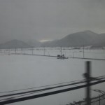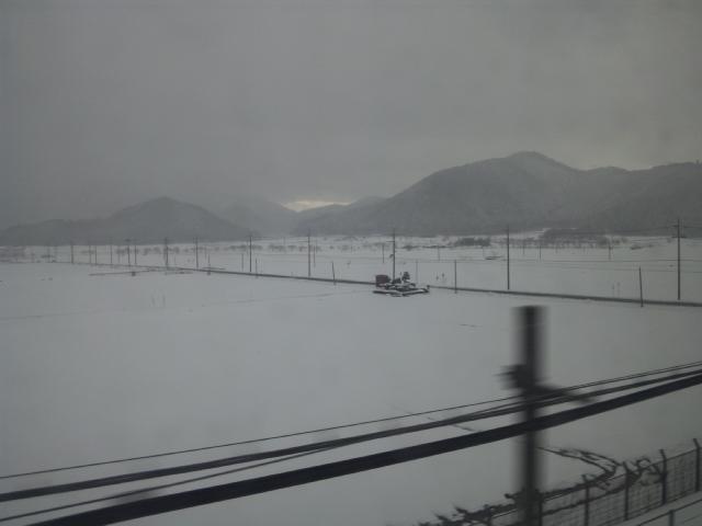 ビジネスマンの皆さんならご経験がおありだと思うのですが、この冬場の季節に東海道新幹線は、かなりの頻度で名古屋~京都間で遅れます。米原付近の降雪で徐行することが多いからです。たしかに米原や関ヶ原辺りの光景は本当に「目を疑う」という表現がぴったりなことが多くて、名古屋や京都では綺麗に晴れていても、その途中の米原周辺だけが凄い雪景色になっていることが少なくありません。そして、この降雪の影響による新幹線の遅延は、5分程度のときもありますが、30分以上遅れることもあり、時間が読めないので困ります。この日は新大阪駅で20分遅れを予告していたところ、実際は約15分遅れで名古屋に着きました(写真は、この日の京都周辺と米原周辺の様子です。別の国みたいですよね)。