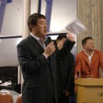 ゴルフの後は成績発表を兼ねた会場で、チャリティーのためのオークションがありました。261名が貸し切りで参加したコンペだけに盛大で、この売上は、東日本大震災の義援金として寄付されました。