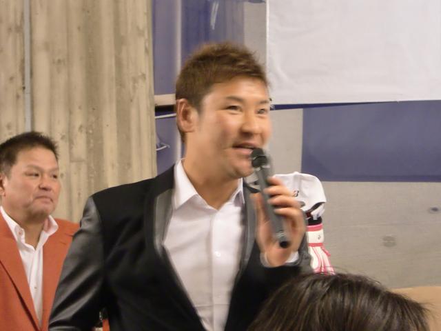 元近鉄の金村義明さんや元ヤクルトの広澤克実さんらが司会をされたこともあって、このチャリティーゴルフには、プロ野球選手も多数参加されていました。現役メジャーリーガーの高橋尚成投手やオリックスのTー岡田選手、OBでは元阪神の矢野燿大さんや片岡篤史さんなどが参加され、サイン入りバットが飛ぶように売れていました。私の同伴競技者の方は、日本ハムのゴールデンルーキー大谷翔平選手が試合で使用したサイン入りバットを落札されて喜んでいました。