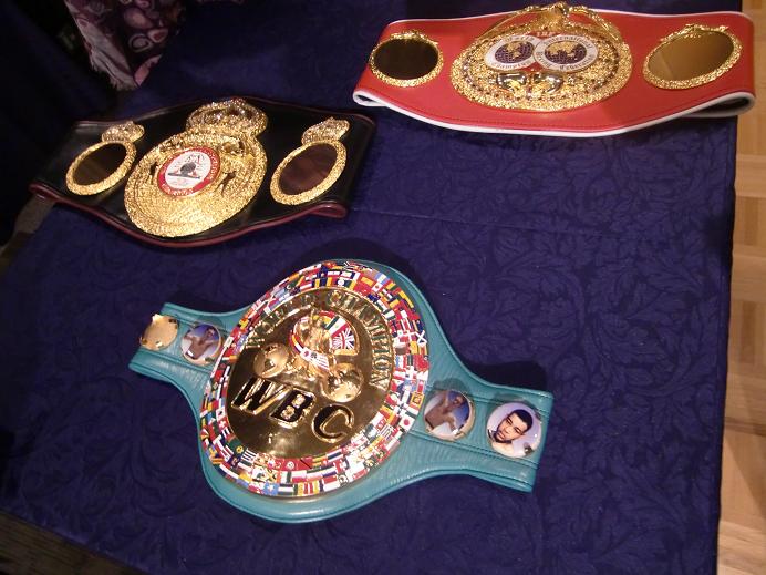 高山さんは、祝勝会のときに、IBFだけでなく、WBAとWBCを合わせた3本のベルトを持って入場されました。ただ、高山さんが現在保持されているのは、IBFのタイトルだけですから、一度獲得して、その後失ったWBAとWBCのベルトを、何故持っているのか、不思議に感じられた人もいると思います。私は、一度チャンピオンになると、王座を失ってもベルトのレプリカが貰えるのかと思っていたのですが、そうではないのです。