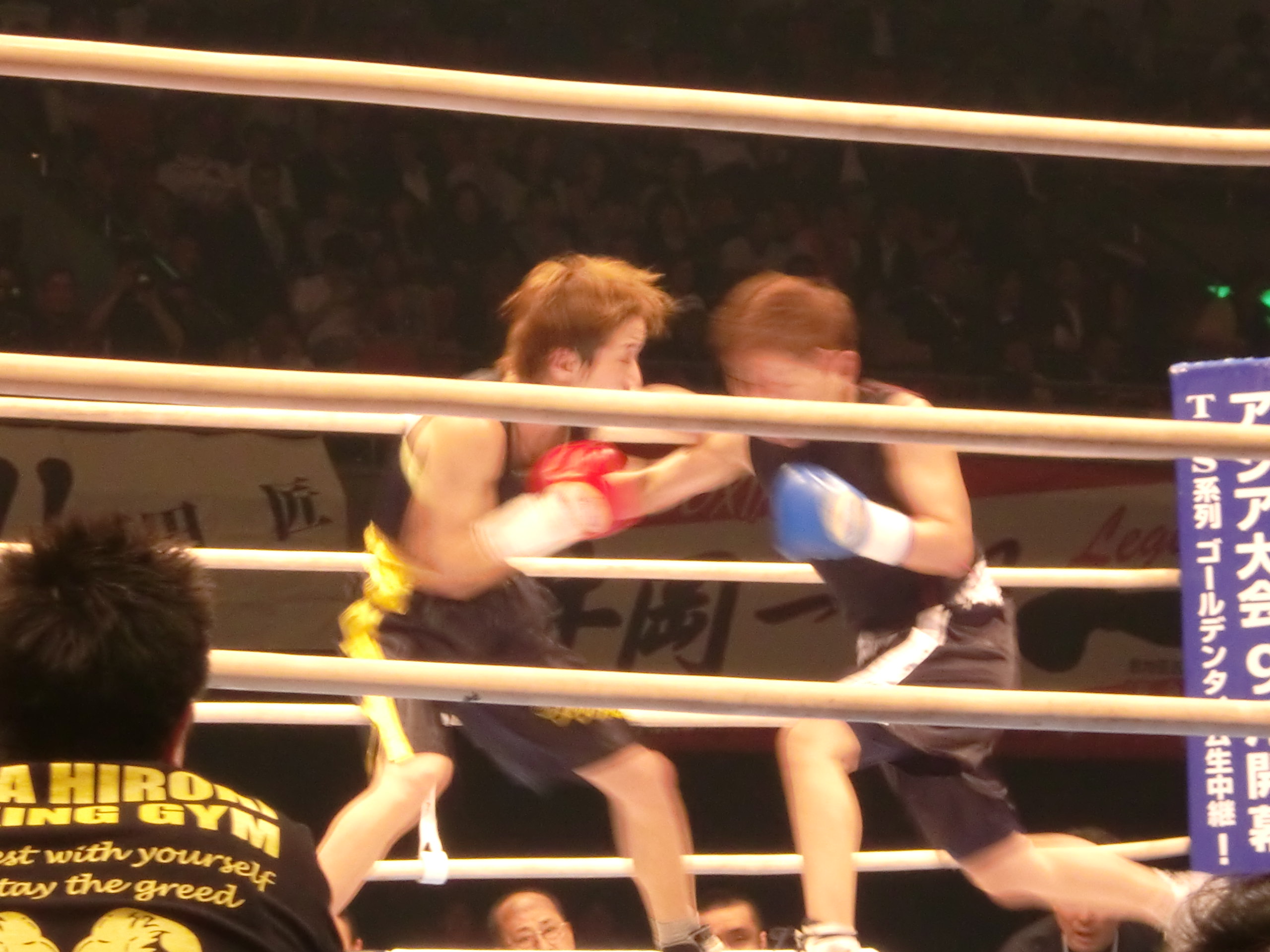 しかし、いざ試合が始まると、見事に節制された肉体から、お互いに力一杯のパンチを繰り出し、この試合は壮絶なダウンの応酬となりました。結局、山岸愛子選手がKO勝ちしましたが、見事なナイスファイトでした。