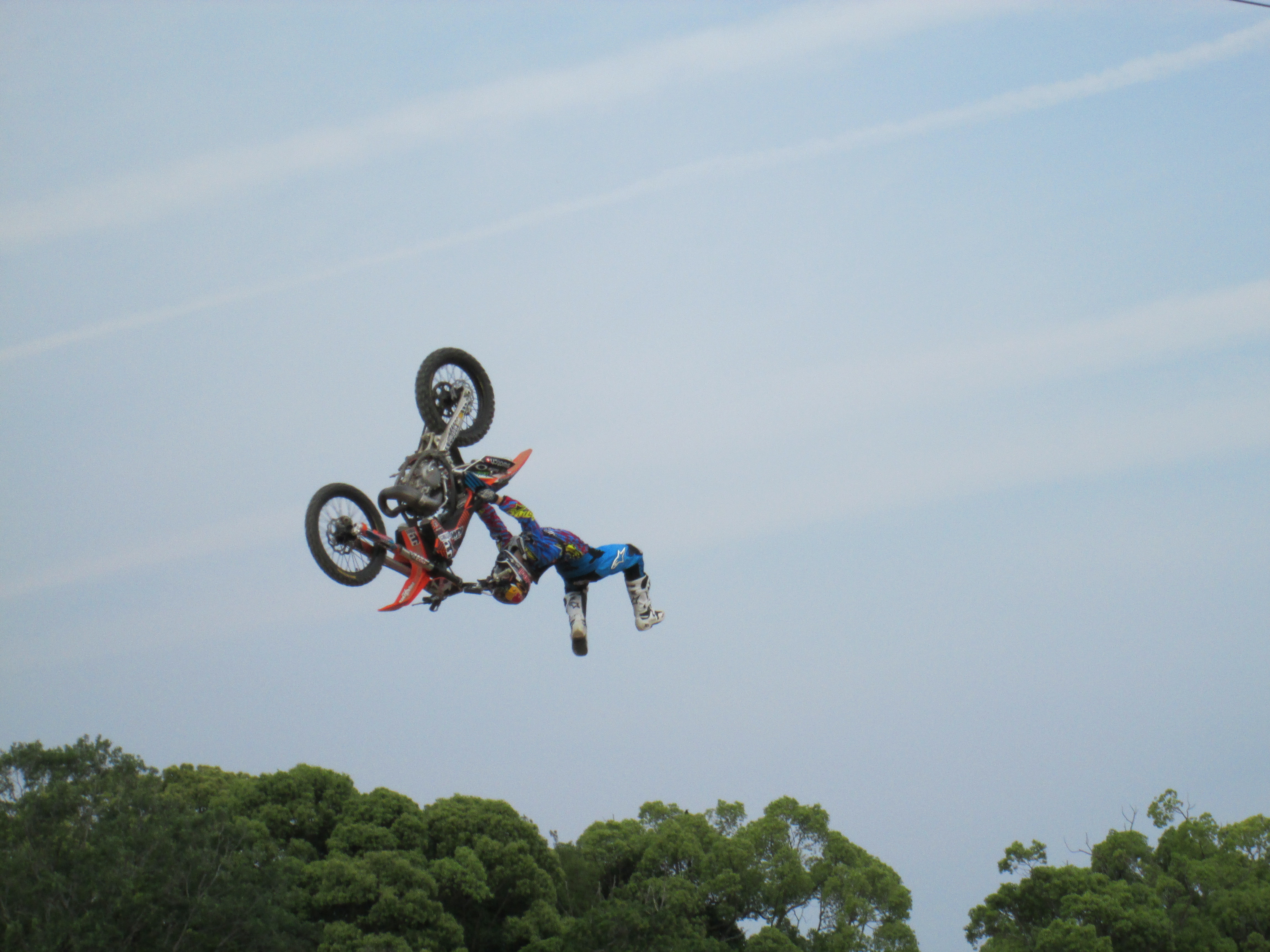 これはモトクロスのライダーがコース内の様々なジャンプ台を使って、バイクに乗りながら高く飛翔し、空中において、様々な技を披露して、その技のバリエーション、難易度やコース取りの巧みさなど5項目の得点を競う競技です。