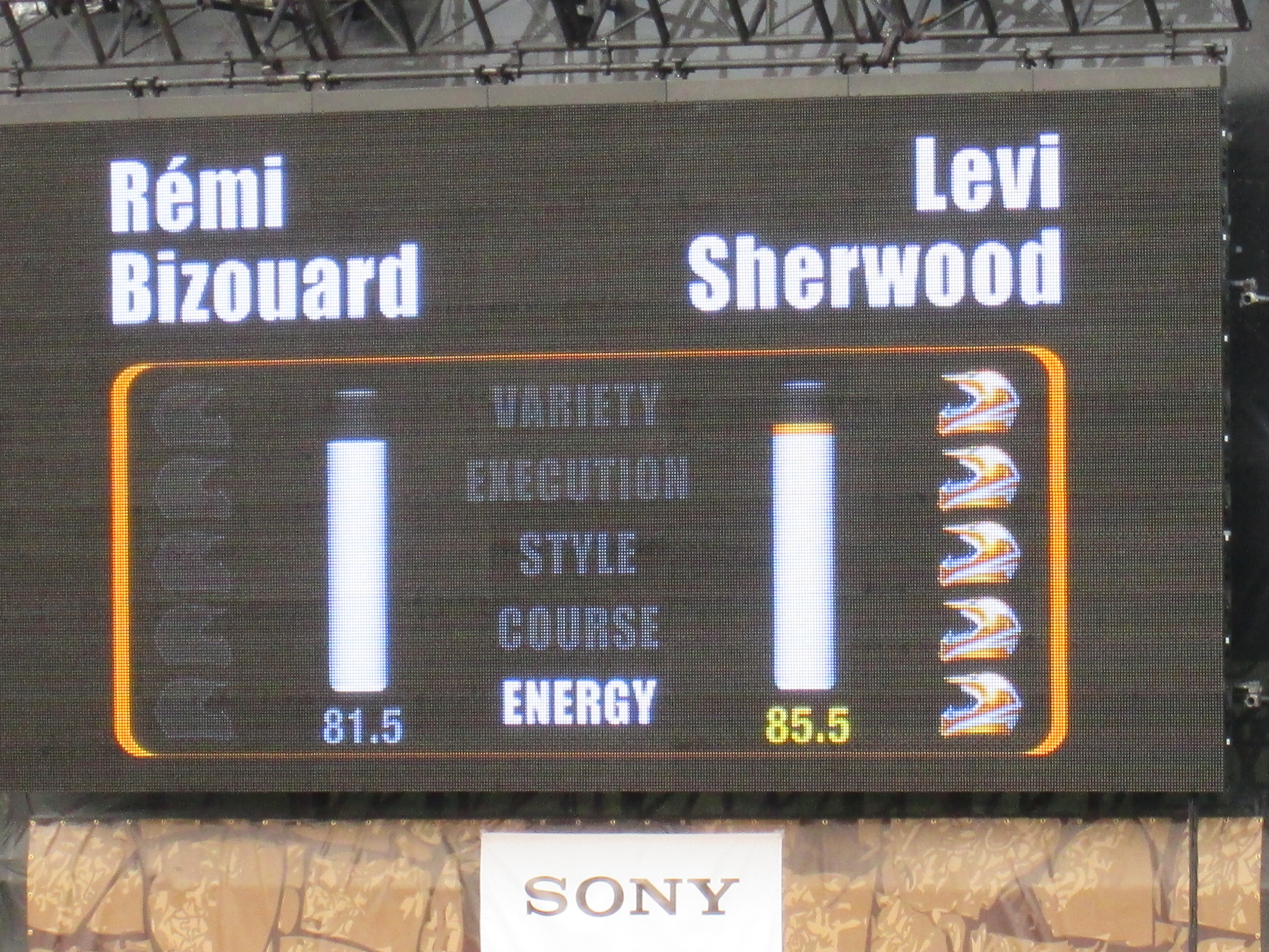 実況中継のDJさんの盛り上げ方も上手くて、終わってみれば大変な活況だった大会でしたが、競技の結果はニュージーランドのリーバイ・シャーウッド選手が圧勝しました。準決勝決勝ともに、5つの項目を1つとして譲らず、パーフェクト勝利でしたが、その演技の迫力や美しさは、全くの素人である我々にも十分に伝わるものでした。