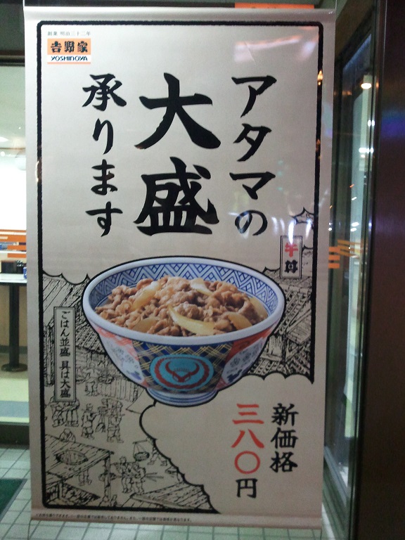 吉野屋は狂牛病騒動の渦中でも、頑なに牛丼に適したアメリカ産牛肉の使用にこだわり、なかなか牛丼の販売を再開しませんでしたが、私は一時的に肉よりも、むしろタレの味が落ちたようで不満に感じたときがありました。並盛一杯280円と、吉野屋がちょうど低価格路線を歩んでいた時期です。
